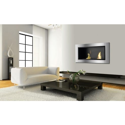 Free up floor space and give your room a streamlined, modern look with this Lata Recessed Ventless Ethanol Fireplace. This clean-burning fireplace gives you all the heat and warmth of a traditional fireplace without the fuss and mess of a wood-burning units. It works on ethanol, so it doesn’t need special lines or a chimney to give you the deliciously toasty heat you crave to knock the chill out of frosty mornings. It has a beautiful contemporary look with a stainless steel frame that is shiny and modern, and a black powder-coated backdrop that provides the perfect canvas for the 1.5-liter burners. This unit gives out a total of 12,000 BTUs of heat with two burners.